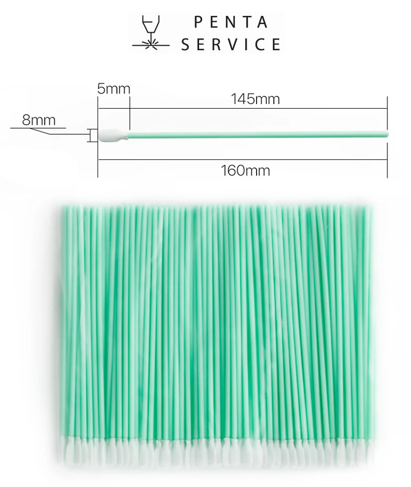 Для очистки оптики важно использовать безворсовые чистящие палочки (свабы). Палочки применяют для точечного удаления инородных частиц с поверхности оптической детали. Они не оставляют микроскопических частиц ворса, которые могут пригореть к линзе так же, как и пыль, поэтому их использование исключает риск повреждения деталей. Они имеют нежную текстуру, идеально подходящую для очистки поверхностей оптических элементов. Палочки удобно использовать в сочетании с изопропиловым спиртом, который удаляет с поверхностей отпечатки пальцев, жировой налет и другие загрязнения.