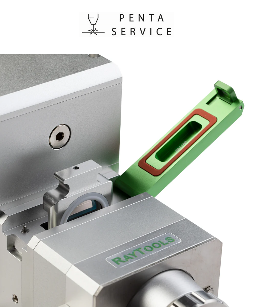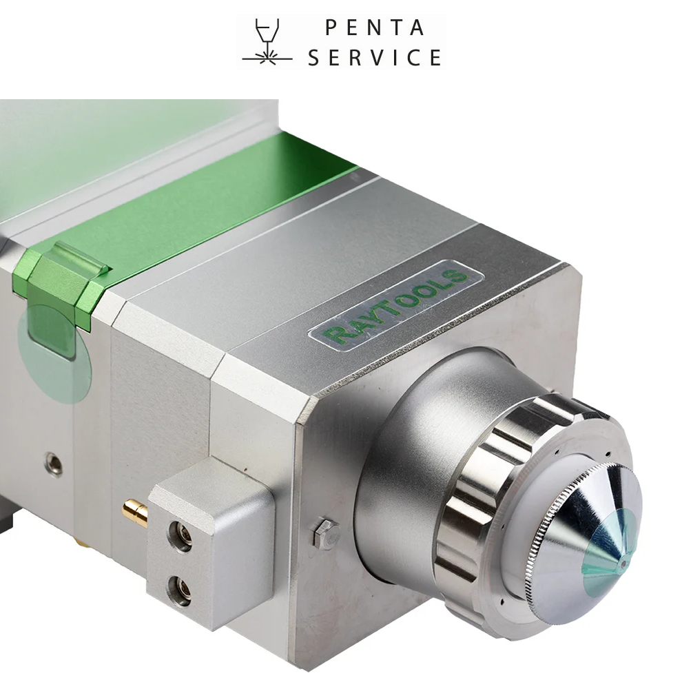 Лазерная головка состоит из четырех основных блоков: коллиматорный модуль, модуль привода фокусирующей линзы, модуль защитной линзы и модуль сопла.- Коллиматорный модуль преобразует расходящийся пучок света, исходящий из оптического волокна, в параллельный лазерный луч, который выходит через центр сопла. В головке установлен объектив с коллимационными линзами D30 F100 мм.
